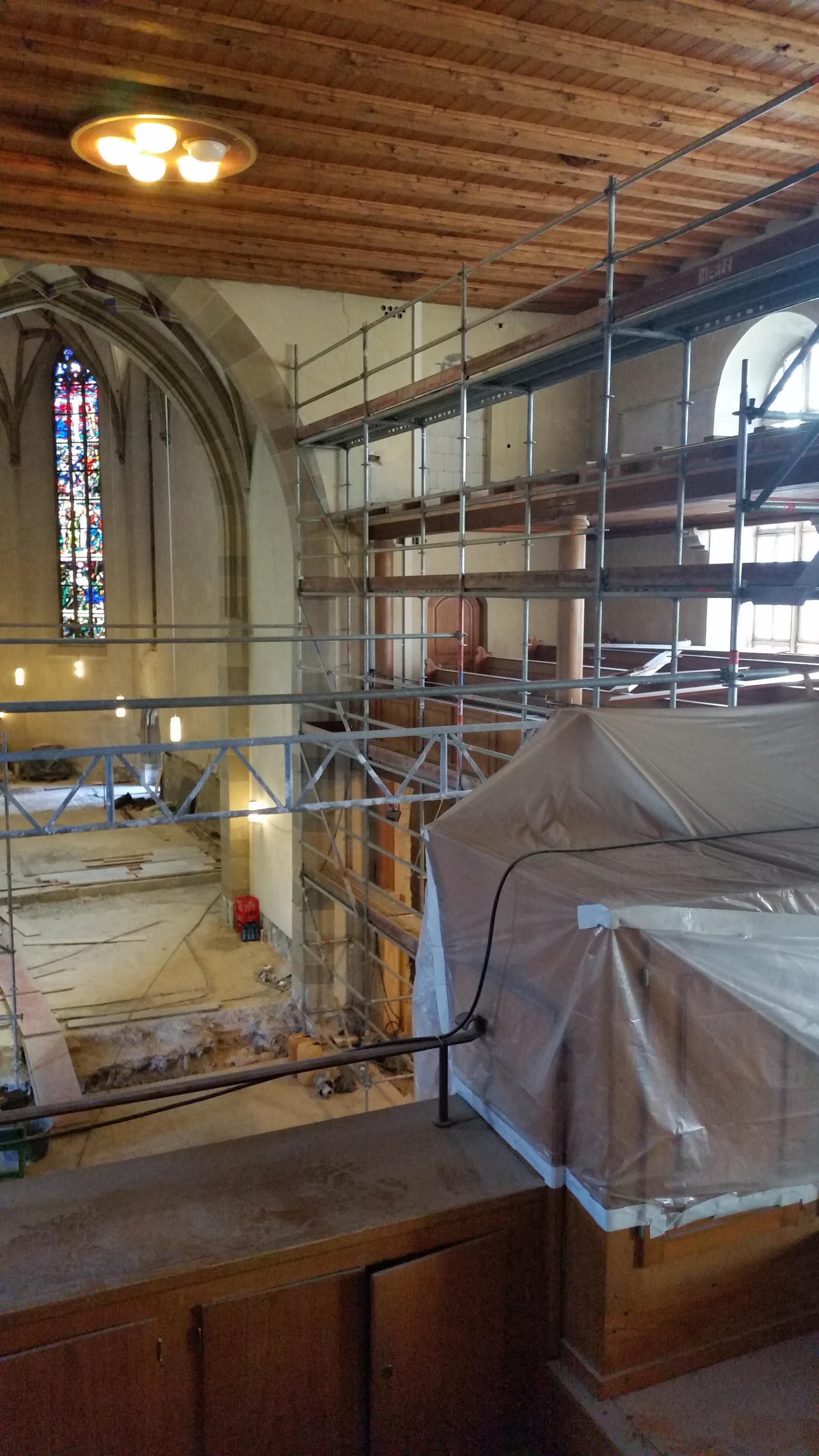 Die Arbeiten schreiten mit großen Schritten voran, die Kirche ist zur Großbaustelle geworden: