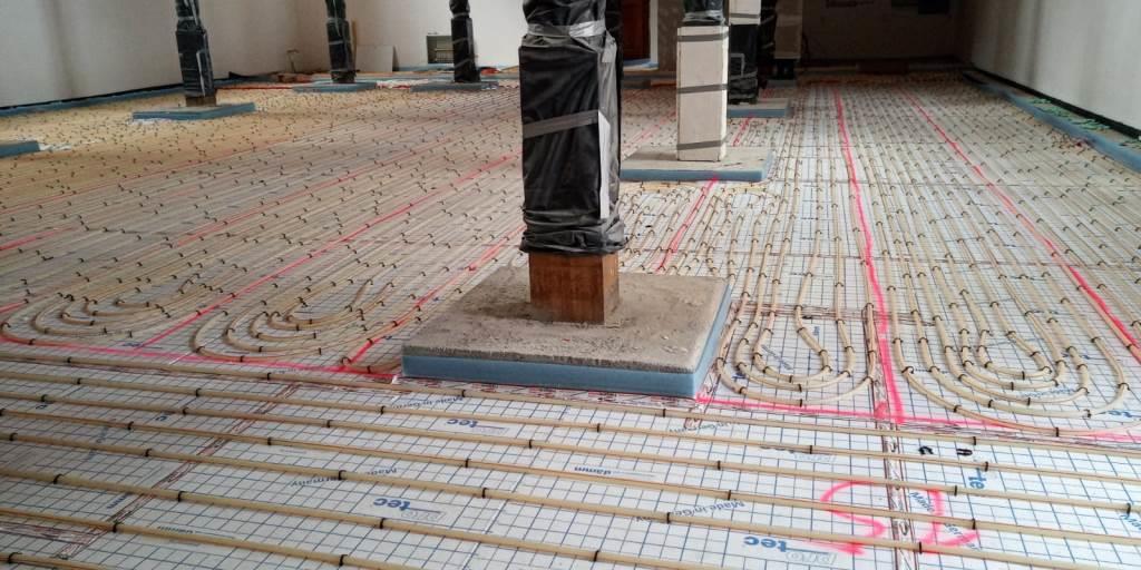 Im Kirchenschiff wird die neue Fußbodenheizung verlegt.